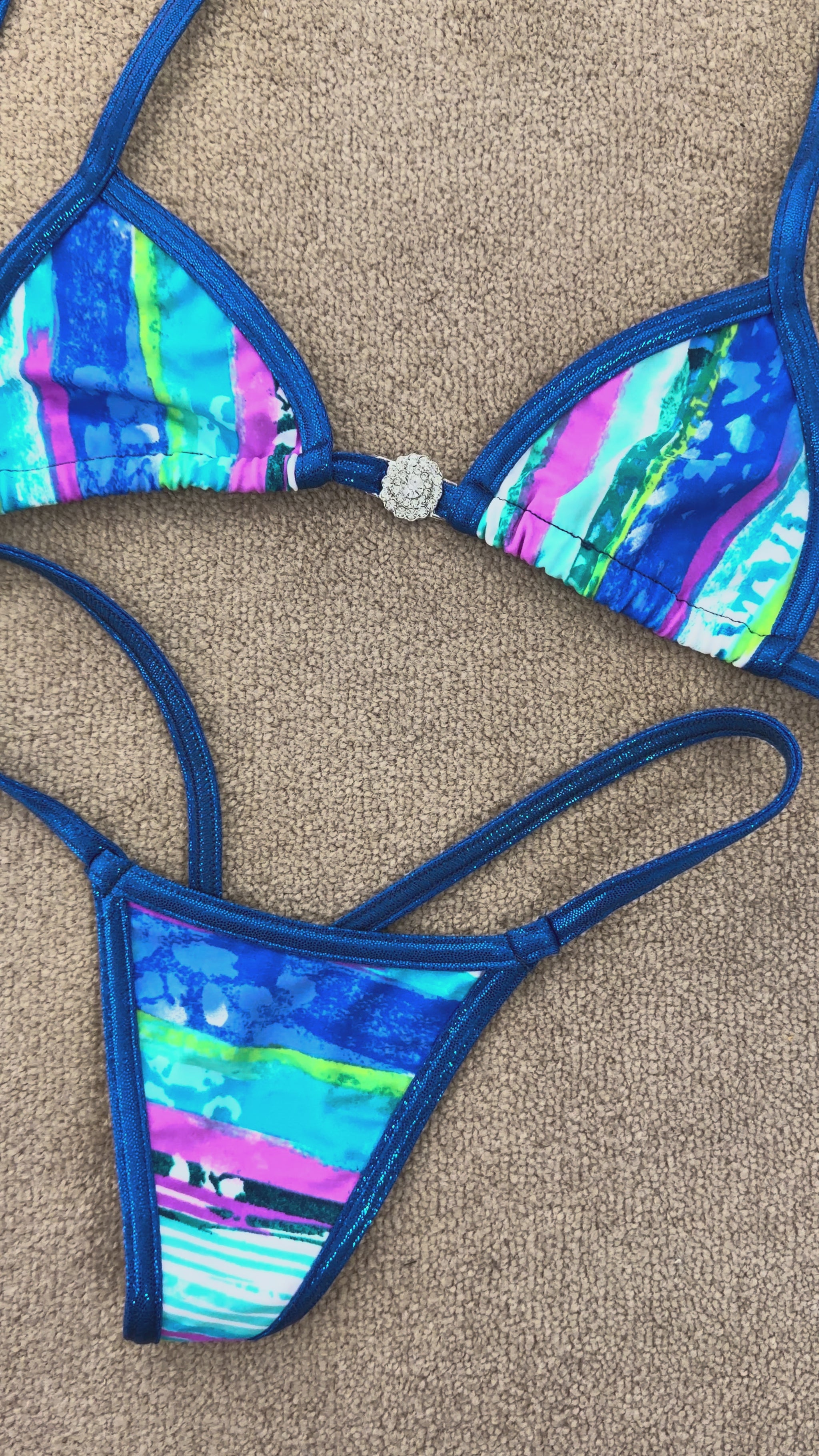 “Okay wait, I have to tell you about this bikini I just got, it’s unreal. It’s a G-string cut, like barely there but in the best way. The blue print really pops with a tan.”